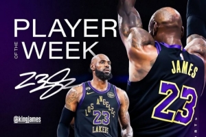 这是詹姆斯生涯第70次当选周最佳球员,再创历史第一纪录。