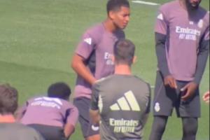 体育资讯04月20日讯 今日皇马在训练基地训练,备战对阵阿拉维斯的比赛。姆巴佩在训练中误将球踢中维尼修斯的下体,随后上前表达歉意。